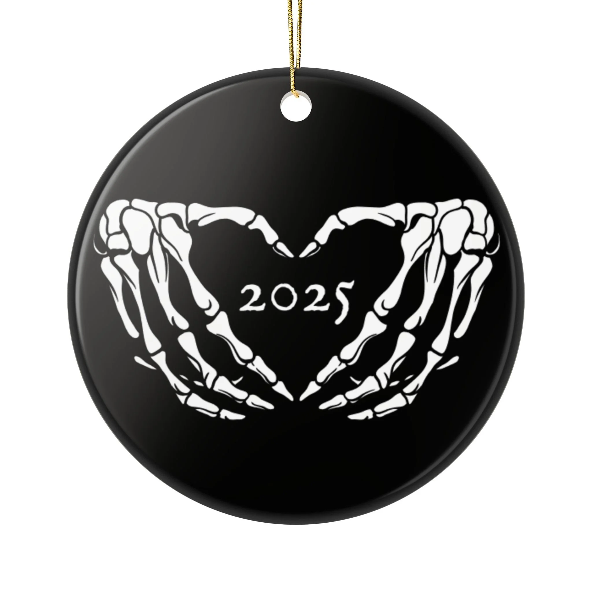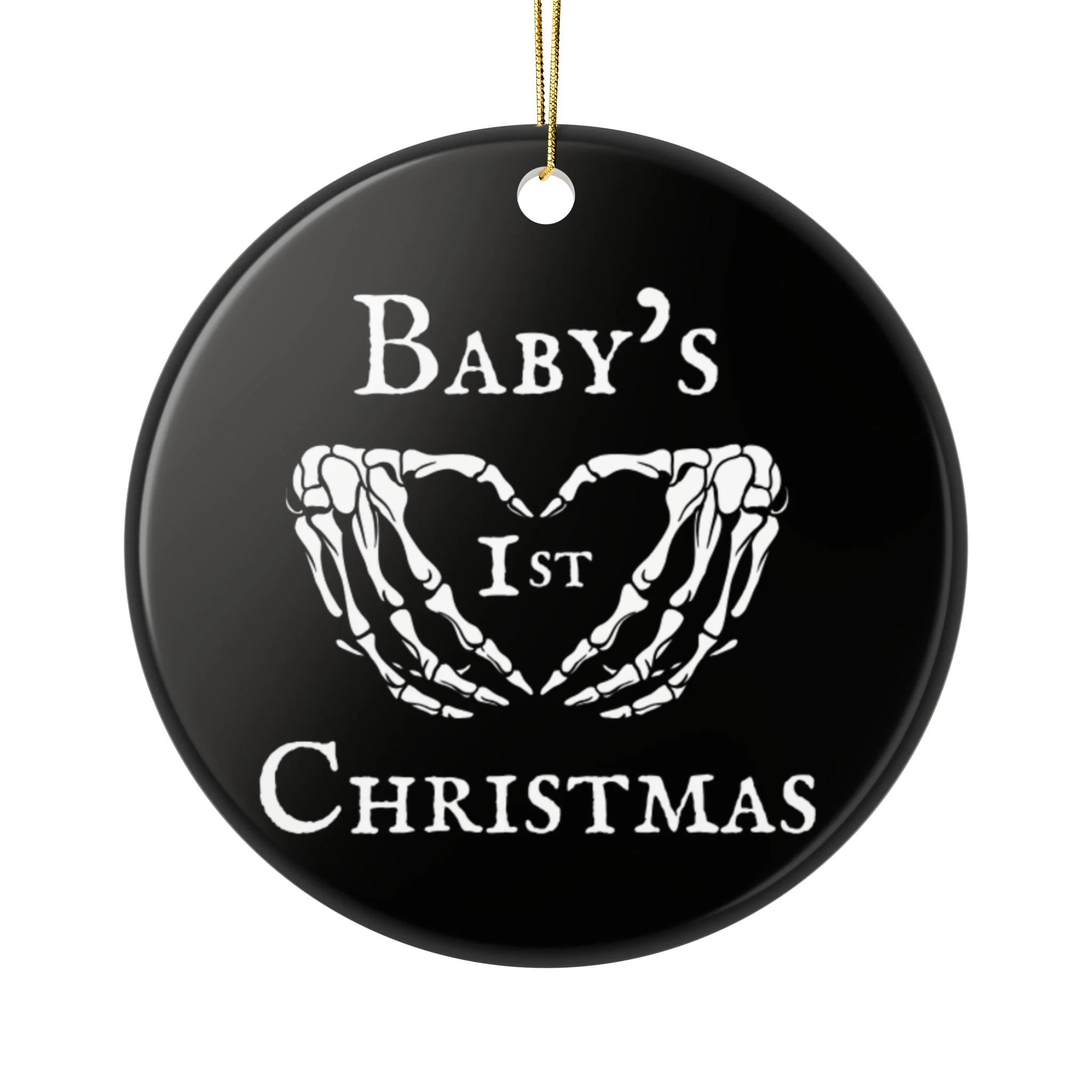 Forget pastels and cherubs—your baby’s first Christmas deserves something with more bite. This gothic ornament features skeleton hands forming a heart, a perfectly eerie symbol of love for your little one. Dark, bold, and dripping with alternative flair, it’s made for families who embrace the shadows just as much as the sparkle of the tree lights. A keepsake that says: yes, we’re raising them spooky right from the start.